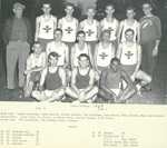 Cross Country, 1959. Won 6, Lost 1. Back Row: Coach Glascock, Clyde Rector, Robert Morris, Tim Williams, Rick Mason, Phil Junker, Mgr. John Kessler. Seond Row: Larry Polk, Al Barcus, Carlton Coats, Harold Salmon, Dick Podell. Front Row: Tom Carpenter, Tom Harmon, Steve Jackson. 1959 season scores.