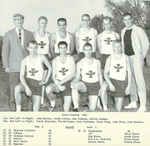 Cross Country 1961. Won 6, Lost 1. First Row (left to right): John Mercer, Corky Coates, Ron Schmink, Harold Salmon. Second Row (left to right): Coach Glascock, Tim Williams, Gary Toothman, Larry King, John Blad, John Kessler. 1961 season scores. ICC: 3rd Place. Big State: 6th Place. NAIA District: 1st Place. Little State: 4th Place.