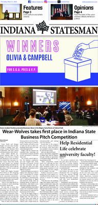 Winners: Olivia & Campbell for S.G.A. Pres & V.P.; Wear-Wolves takes first place in Indiana State Business Pitch Competition; Help Residential Life celebrate university faculty!
